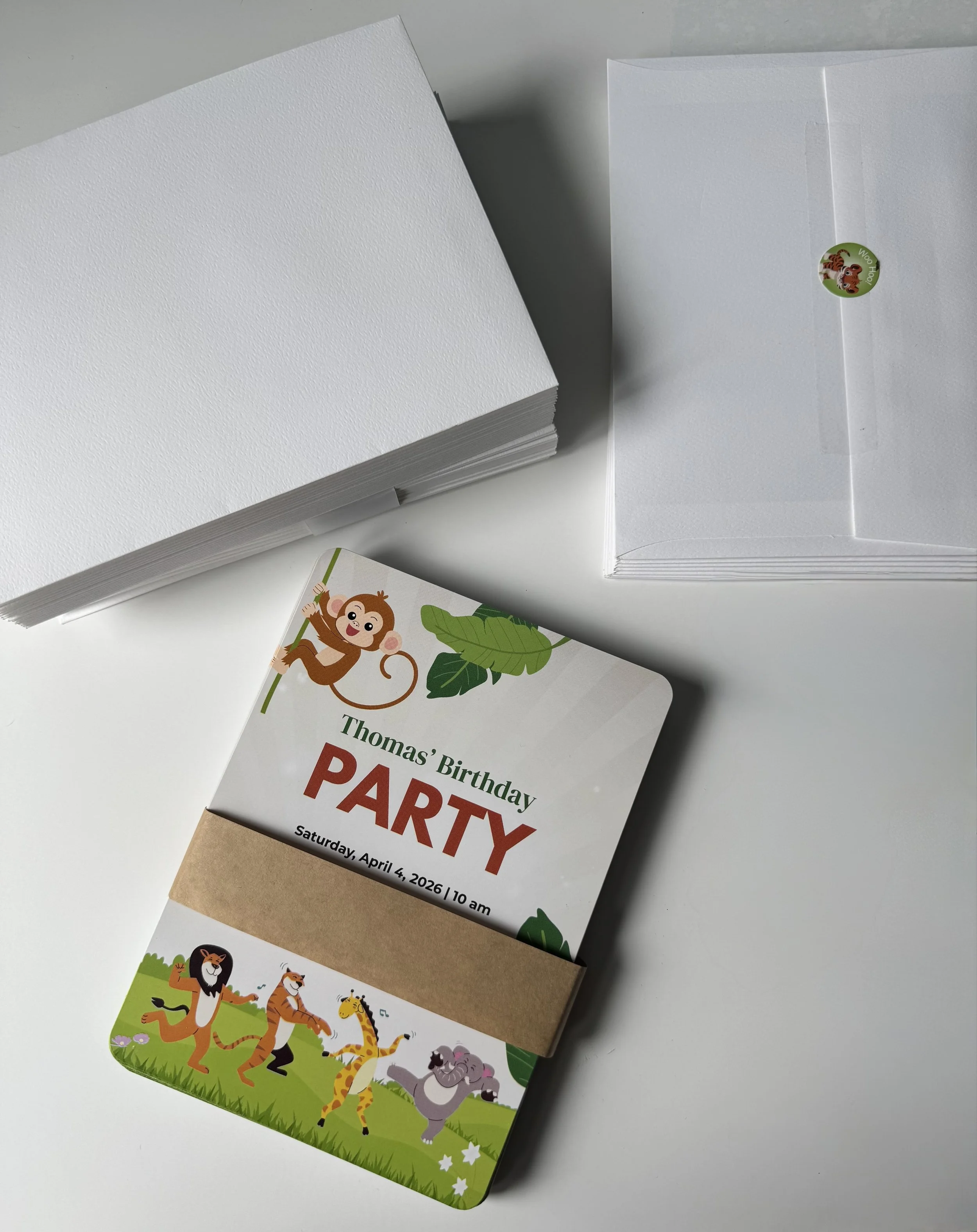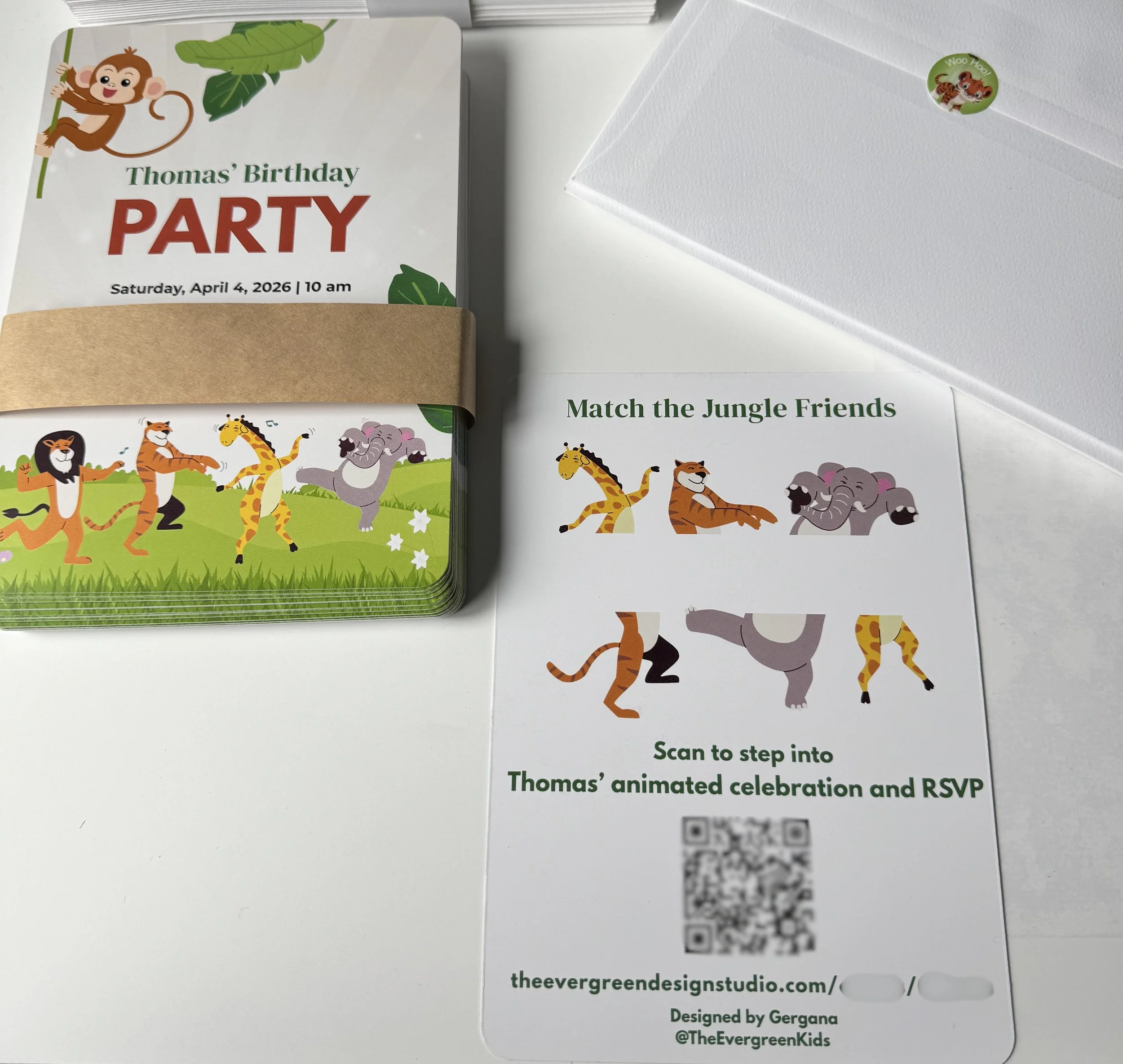 Our first collection focuses on children’s celebrations — combining printed invitations, a private digital event hub, and RSVP management handled by the studio.